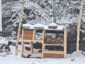 Es summt und brummt bald am ASG: Wir haben Zuwachs bekommen! Seit Anfang Januar steht auf unserem Schulhof ein nagelneues Insektenhotel. Damit schaffen wir