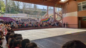 Vom 12. bis zum 18. März weilen 25 Schülerinnen und Schüler zum Gegenbesuch in Leioa (Bilbao) an der Schule „Betiko Ikastola“. Gemeinsam mit einer französischen Schülerdelegation wurden wir am Ankunftstag herzlich begrüßt. Als Zeichen für die gemeinsame Zeit, wurde unserer Schülern eine baskische Flagge überreicht. In den nächsten Tagen stehen Ausflüge und die gemeinsame Arbeit an den begonnen Projekt auf der Tagungsordnung.