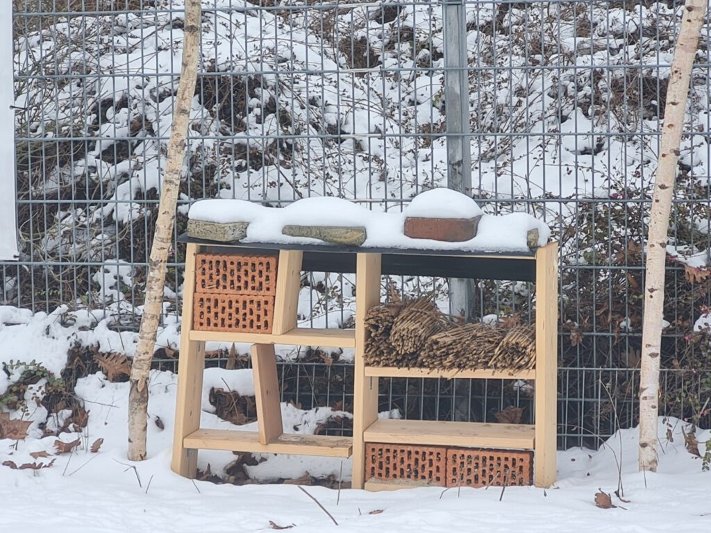 Warum das Ganze? In der Stadt finden nützliche Insekten immer seltener natürlichen Unterschlupf. Unser Hotel bietet mit seinen verschiedenen „Zimmern“ den perfekten Rückzugsort für die kalten Tage und die Brutzeit.
