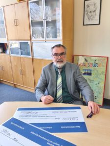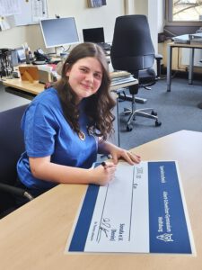 Stellvertretend für die Trostinsel war der Vorsitzende des Vereins Herr Klaus Mohrs gekommen, Marie-Lena Zahn, unsere treue, aber nun leider ehemalige Schulsprecherin nahm stellvertretend für Sonafa die Spende entgegen.