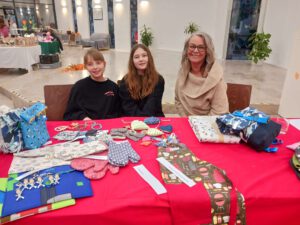 Zum dritten Mal waren wir bei dem „Westhagener Herbstbasar“ mit einem Stand dabei. Die handwerklichen AGs haben tolle Ware zum Verkauf angeboten. Frau Busch, unsere AG-Leiterin für unsere Näh- und Bastel-AGs, hat zusammen mit Ella und Lily den Stand aufgebaut und den Verkauf geleitet. Vielen Dank, dass ihr euch die Zeit dafür genommen habt! Die größten Angebote waren Krabbel- und Tagesdecken und die wohl kleinsten die Geschenk- und Baumanhänger aus Ton. Auf den Tischen befanden sich aber auch allerlei andere Dinge wie Schraubenmännchen-Schlüsselanh